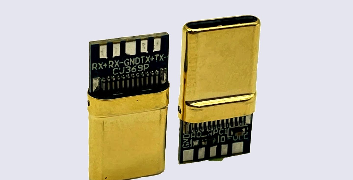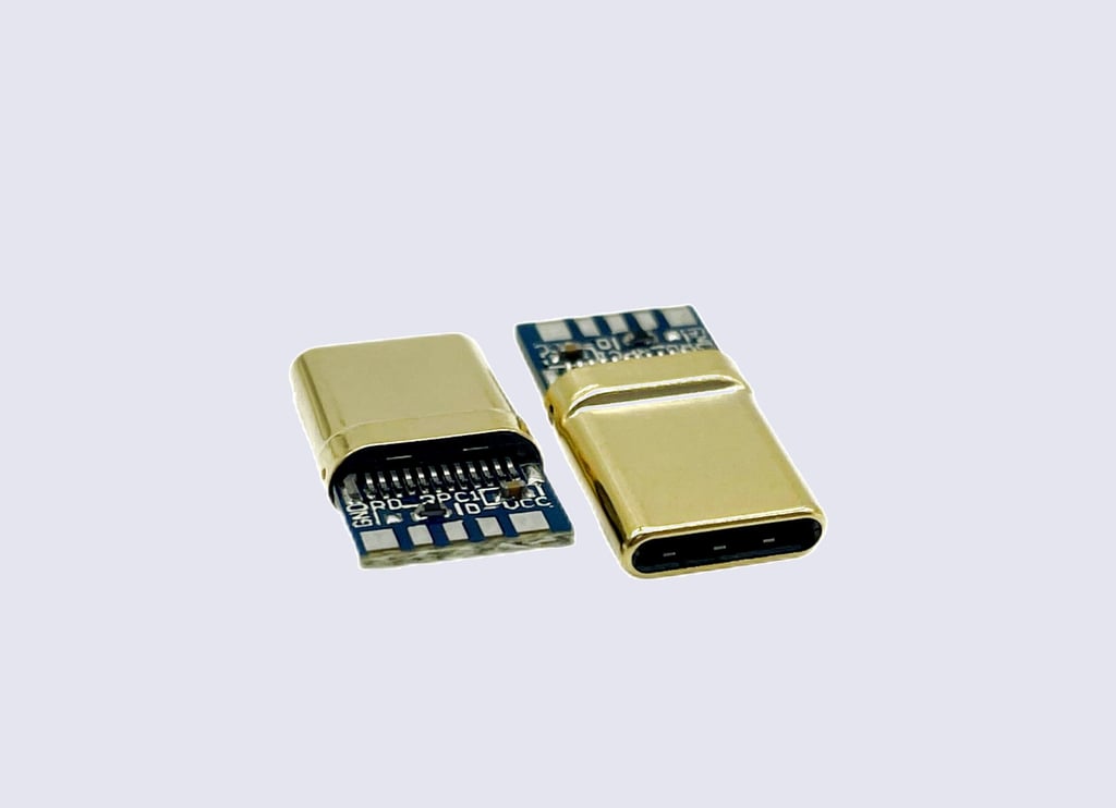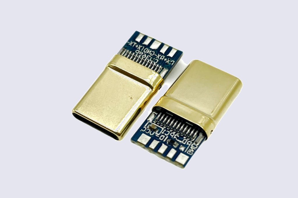 Type-C Plug 24Pin Gold Plated Housing 10 Solder Joints with Capacitors