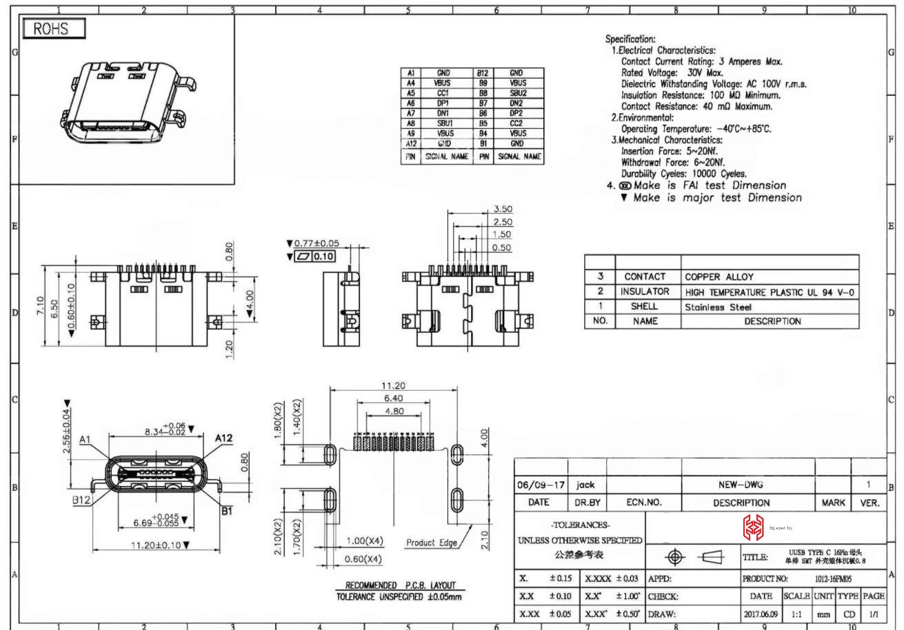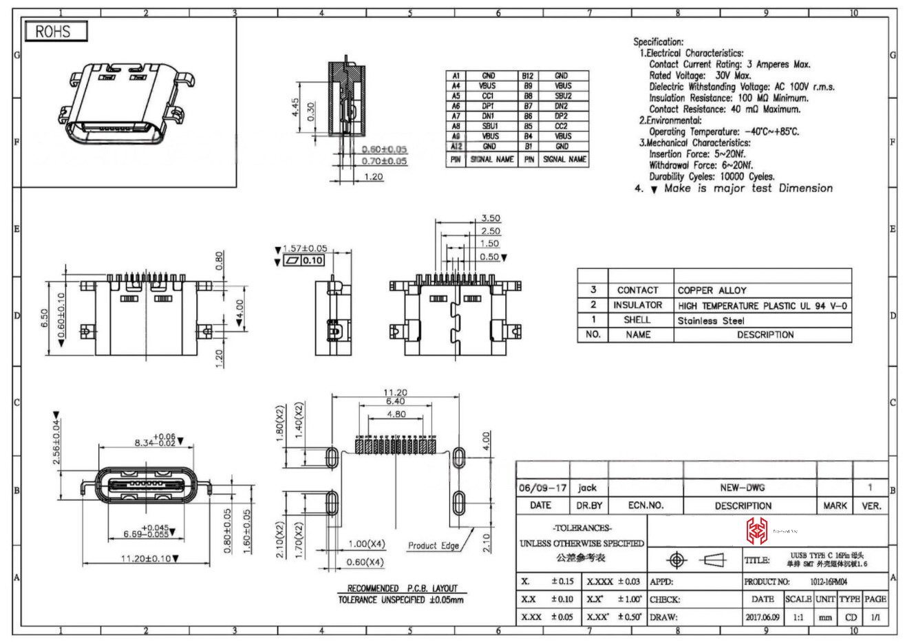 Type-C Receptacle 16Pin(SMD)