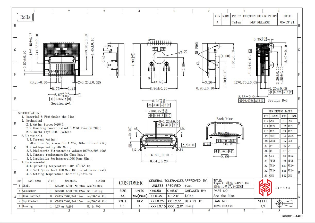 Type-C Receptacle 24Pin (SMD)